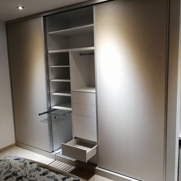Гардероби, шкафове, секционни системи и други практични решения за оптимално използване на пространството.